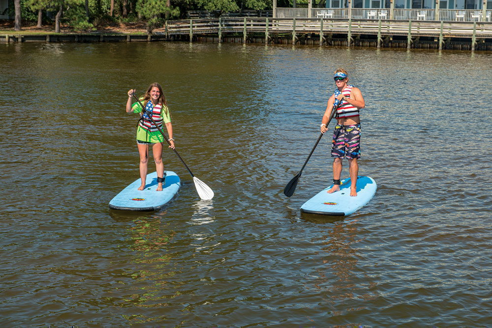 Standup Paddleboards & Kayaks We have fantastic paddleboards for exploring the shores of the Currituck sound. The generous dimensions of these boards make for a very stable ride for any size rider or experience level. If you are looking for something less strenuous we have sit on top single and double kayaks.